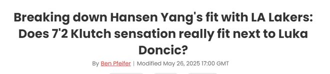北京时间5月27日,选秀专家Ben Pfeifer撰文谈到中国球员杨瀚森,讨论他与湖人的适配度话题。以下是Ben的观点——